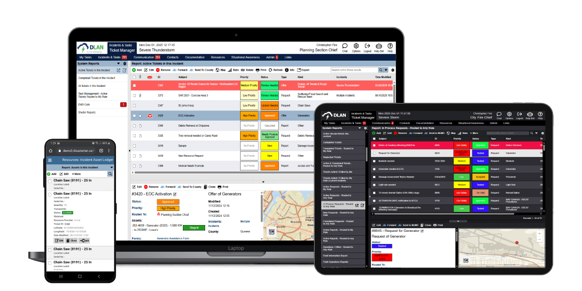 Task and mission information can be entered, prioritized, routed/assigned, and tracked from start to completion.